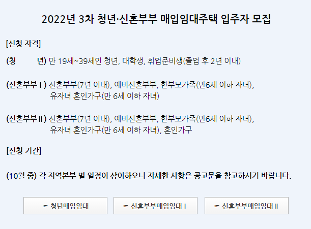 깡통전세 경험해보니까 아무리 전세보증보험에 가입한다해도 정부를 상대로 임차인으로 들어가는 집만큼 속편한 집은 없다. 청년, 신혼부부라면 이번 매입임대주택에 신청해보길 바란다. LH청약센터에서 신청할 수 있다.